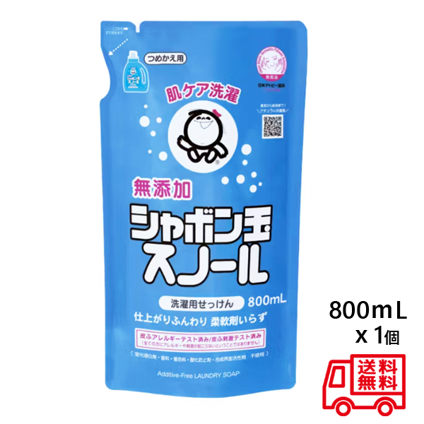 洗濯用せっけん シャボン玉スノール つめかえ用 800mL [送料無料 詰替え 詰め替え 無添加洗濯石けん 無添加洗剤 ベビー服 おしゃれ着 ふんわり仕上がり まとめ買い シャボン玉石けん ]