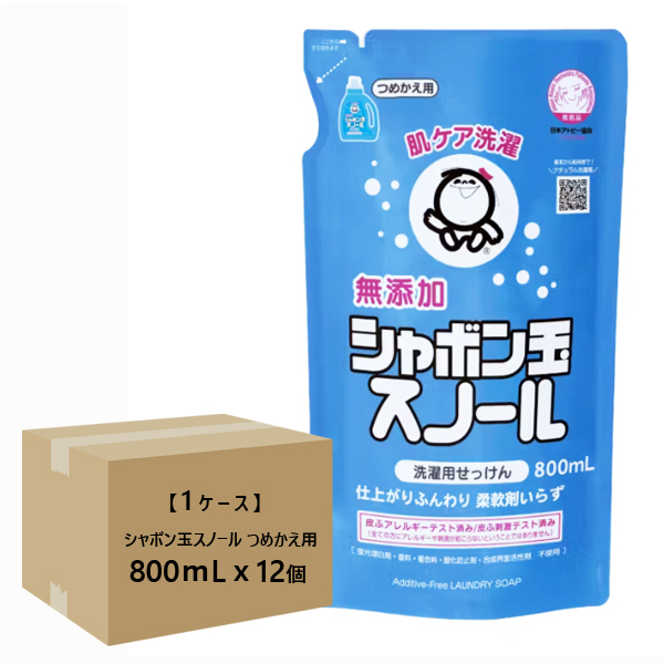 【ケース販売】 洗濯用せっけん シャボン玉スノール つめかえ用 800mLx12個 [詰替え 詰め替え 無添加洗濯石けん 無添加洗剤 ベビー服 おしゃれ着 ふんわり仕上がり ケース購入 まとめ買い 箱買い シャボン玉石けん ]