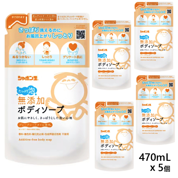 無添加ボディソープ たっぷり泡 つめかえ用 470mLx5個 [詰替え 詰め替え ボディシャンプー ボディ石けん まとめ買い シャボン玉石けん ]