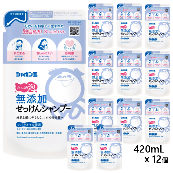 無添加せっけんシャンプー 泡タイプ つめかえ用 420mlx12個 [詰替え 詰め替え 無添加シャンプー 泡シャンプー 石けんシャンプー 低刺激 ヘアケア まとめ買い シャボン玉石けん ]