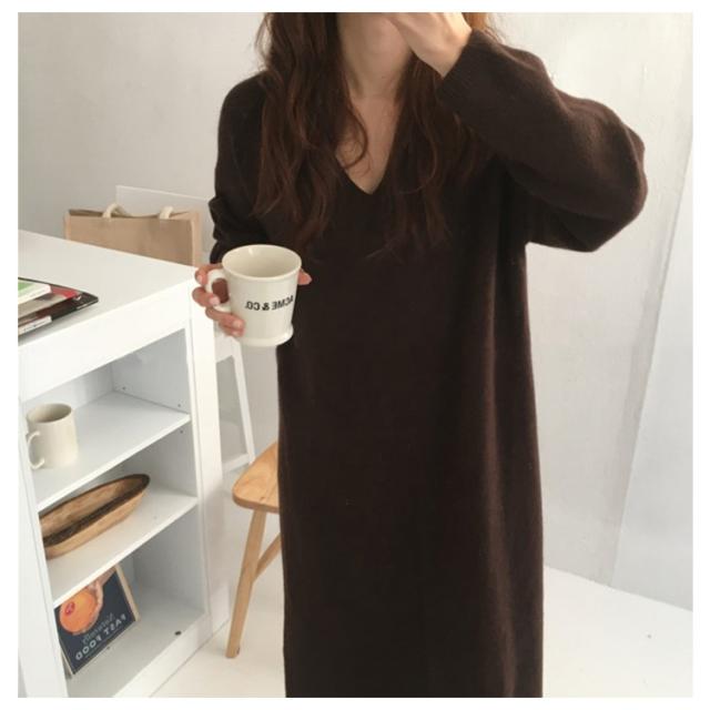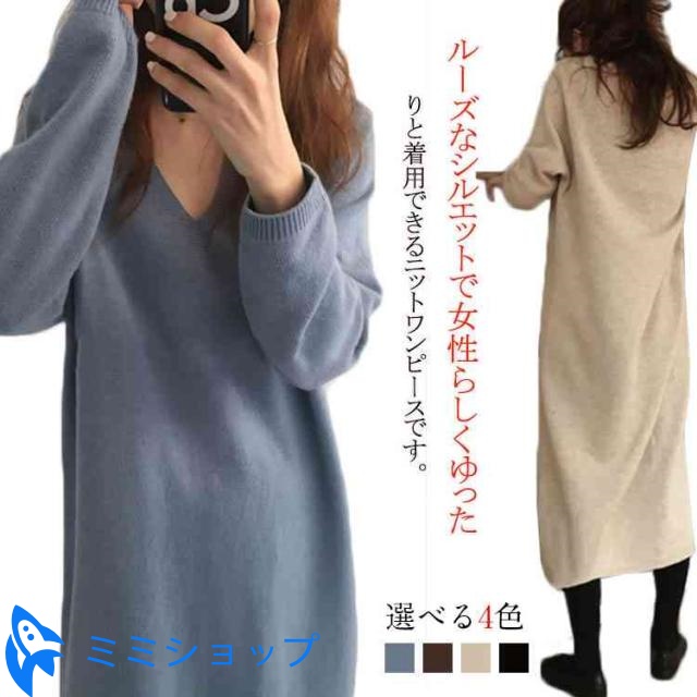 Vネック ニットワンピース ロング丈 ニット ワンピース