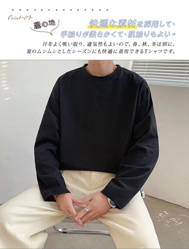 長袖Tシャツ メンズ tシャツ長袖 大きいサイズ 綿100% 無地 ゆったり 柔らか ビッグシルエット カジュアル コットン 肌着 トップス