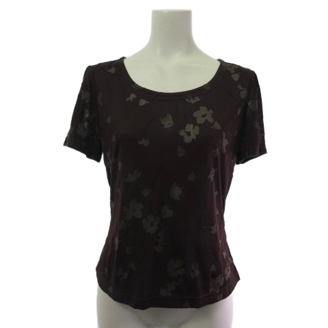 【中古】マーレンダム MARLENE DAM シースルー カットソー 半袖 花柄 ブラウン 42 レディース