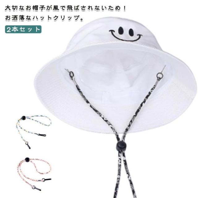 飛ばない ハット用 防風 落下防止 フック式 帽子クリップ 風飛び防止 2本セット 旅行 ストラップ 自転車 散歩 あご紐 帽子留め アウトドア 釣り おしゃれ 帽子止め お洒落 取り付け簡単 長さ調節 アウトドア 総柄 男女兼用