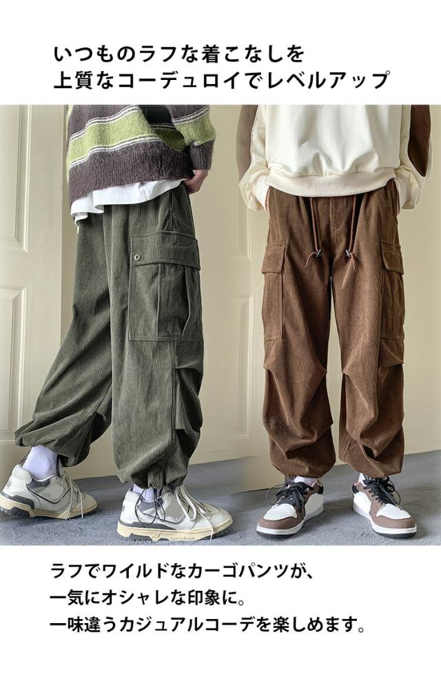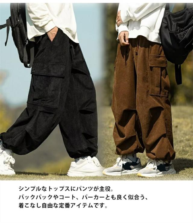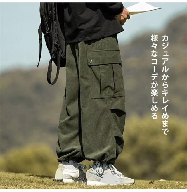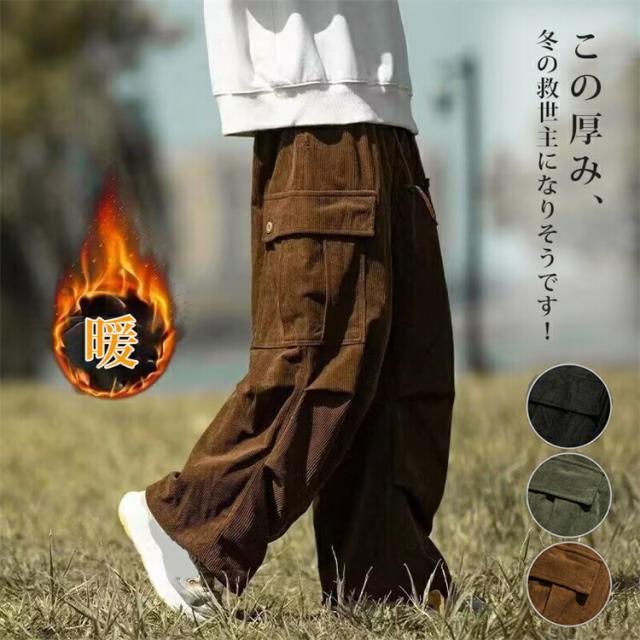 パンツ メンズ 裏起毛 コーデュロイ カーゴパンツ ズ ワイドパンメンズファッション ズボン パンツ