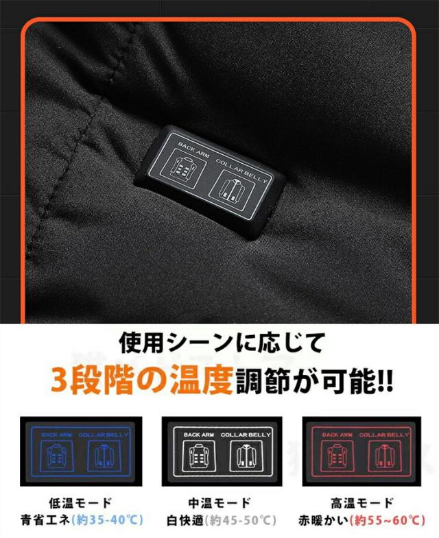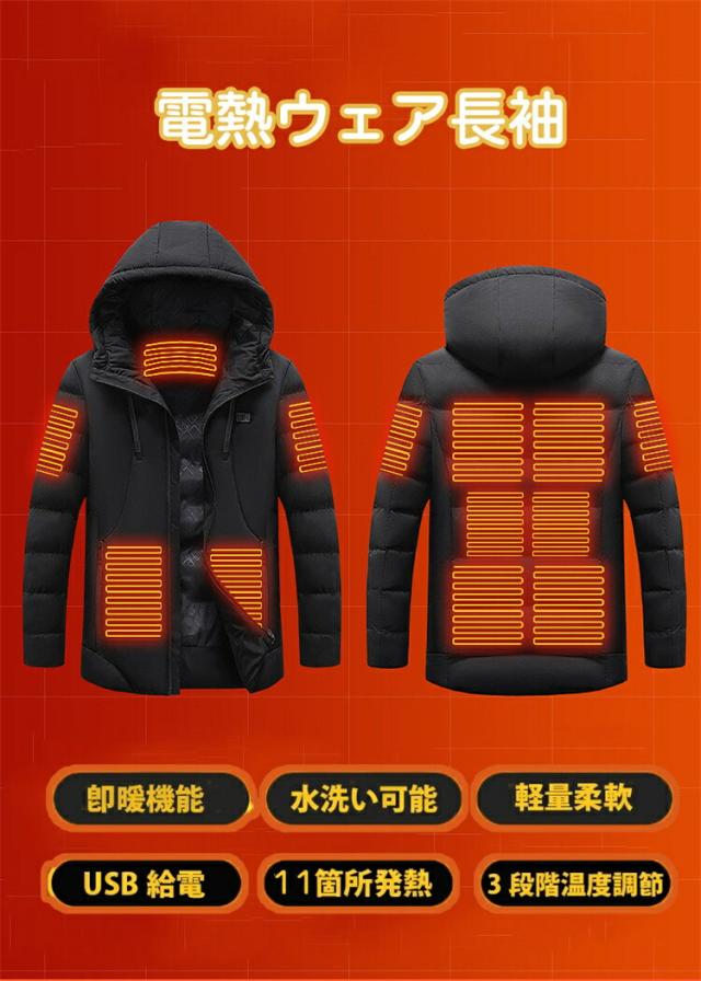 電熱ジャケット ヒータージャケット 11つヒーター付き レディース メンズ 電熱ジャケットコート 電熱ウェア 長袖 加熱ジャケット 加熱服 USB充電式電熱ベスト 3段階中綿ジャケット アウター トッ