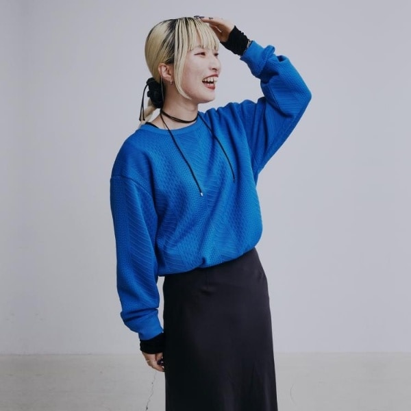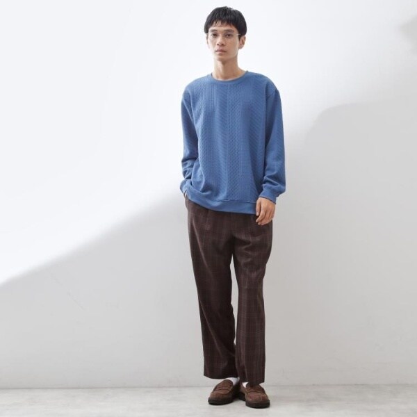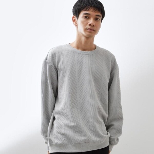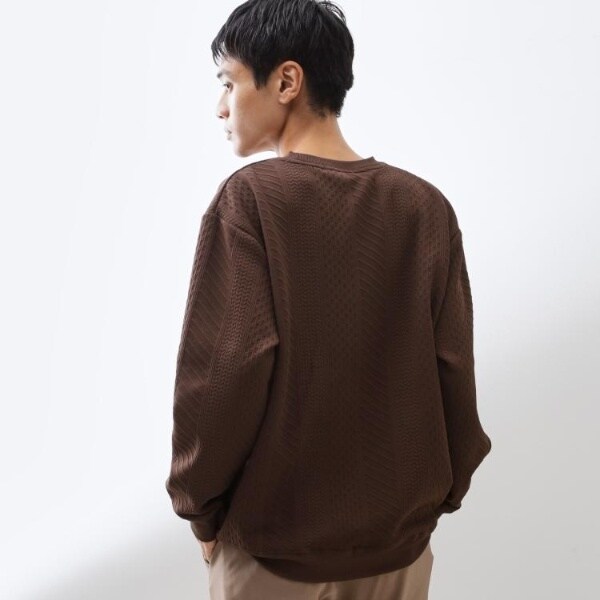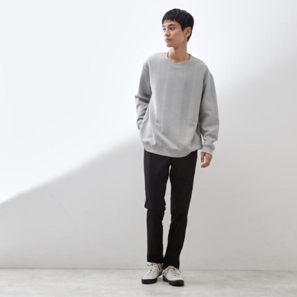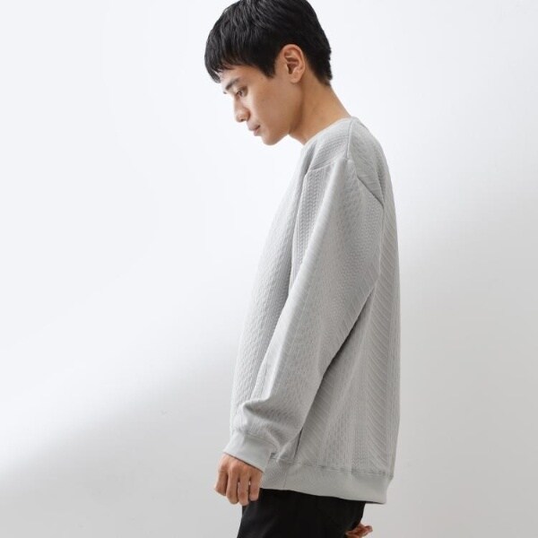立体感のあるふくれジャカード素材を使用したスウェット。