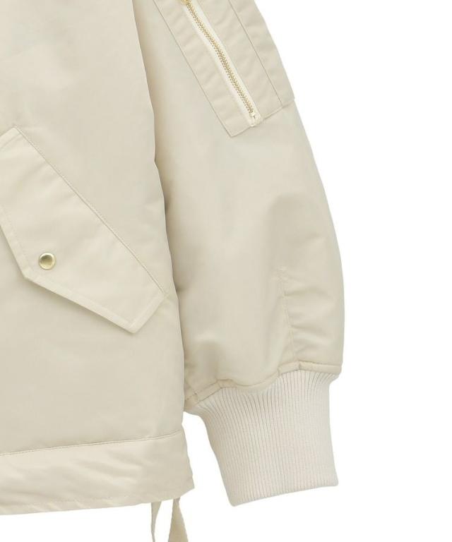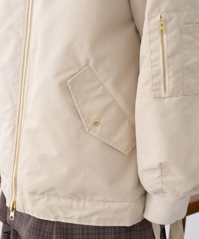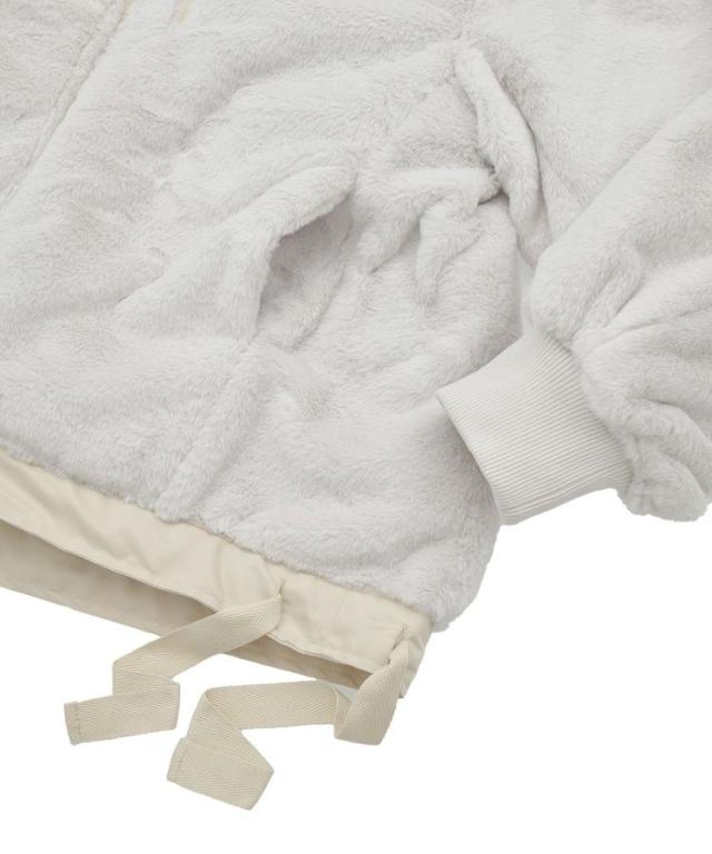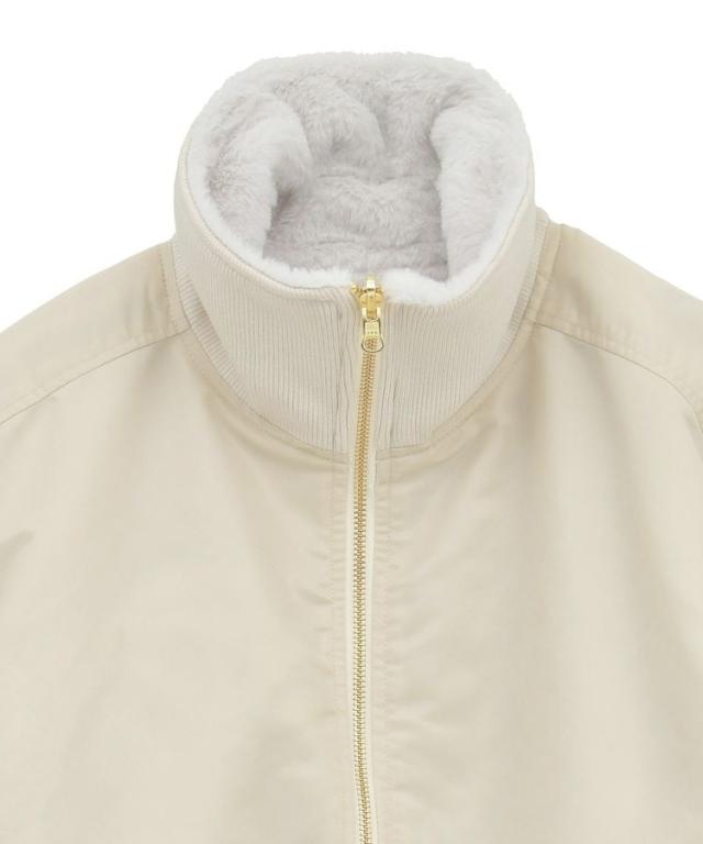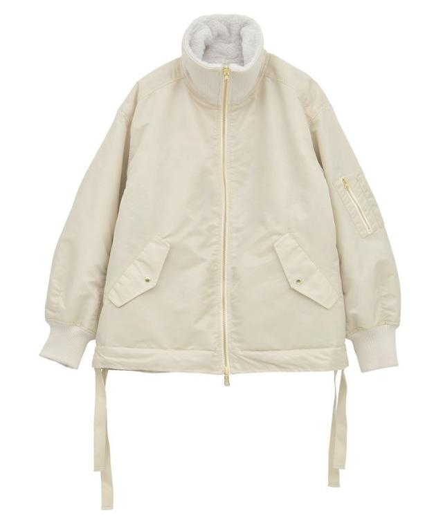 さっぱりとした肌触りのナイロン生地で仕立てたMA−1ジャケット。裏面にふっくらと手触りの良いフェイクファーをドッキングしたシーズナルな仕立てが魅力的な1着です。リバーシブル仕様で違った印象で楽しめるのも嬉しいポイント。立ち襟も可能なリブネックや、裾のドロストリボンも今季のトレンドです。