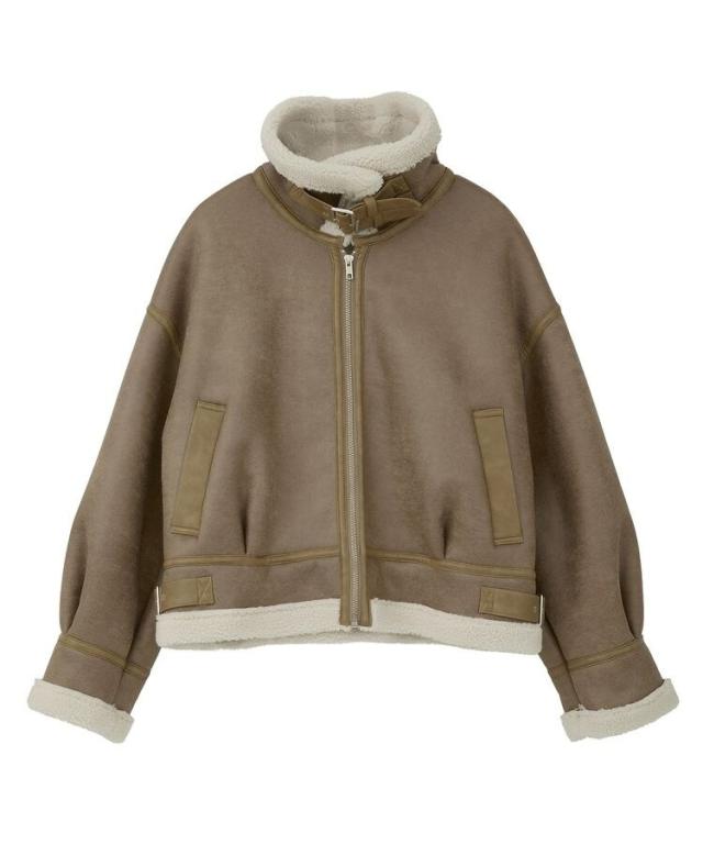 シーズンムード高まる今季注目のフェイクムートンジャケット。滑らかなフェイクムートンにボアを合わせたカジュアルな雰囲気が魅力です。裾タックを施したほんのり丸みのあるフォルムが女性らしさをプラス。衿のダブルベルトを閉めれば首元まで暖かく、寒い季節の防寒もバッチリです。フェミニンなスカートやシアー素材などを合わせたMIXスタイリングもおすすめ。