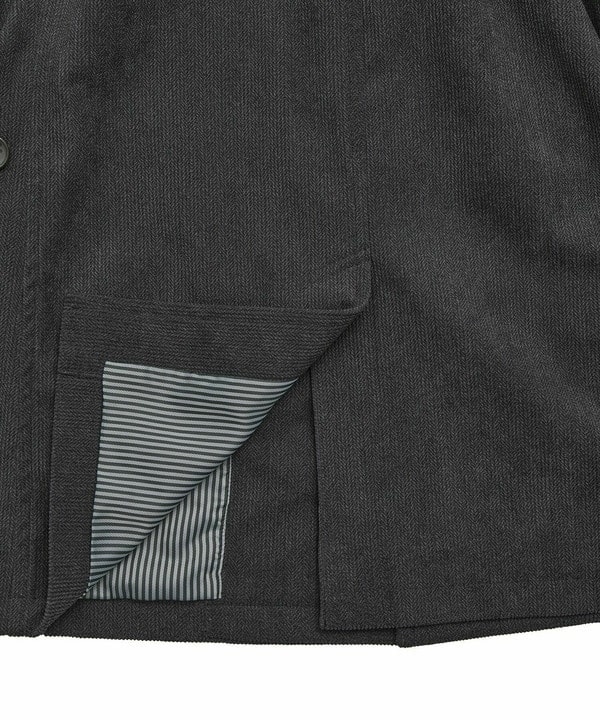 リアルなコーデュロイ調の見た目にヘリンボーン柄をプリントすることで、立体感のあるクラシックな雰囲気をプラスしています。