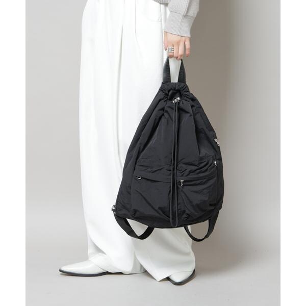 シーズンレスで活躍する、シンプルかつ実用的なドロストバッグ。マットな質感のナイロン素材を使用し、軽量で柔らかい仕上がり。ユニセックスで使用でき、通勤・通学・普段使いと幅広く活躍するアイテムです。