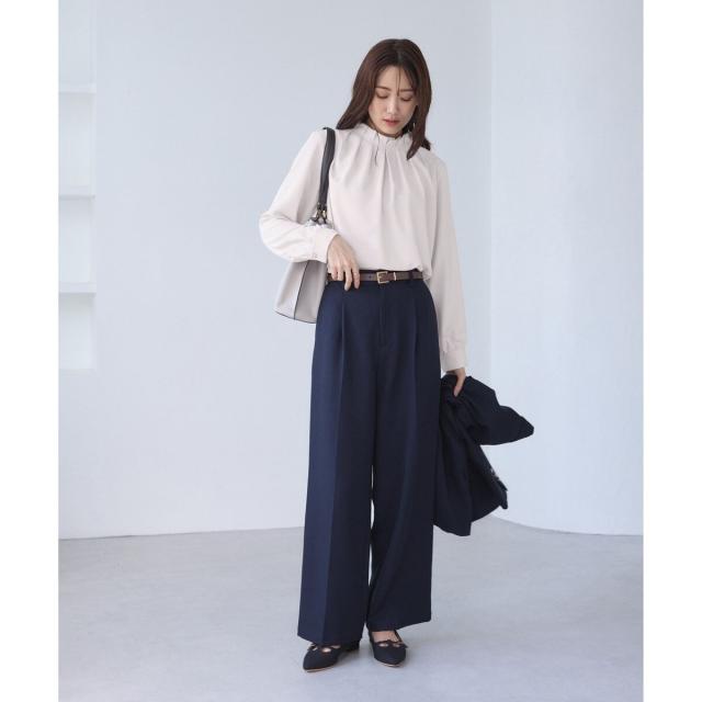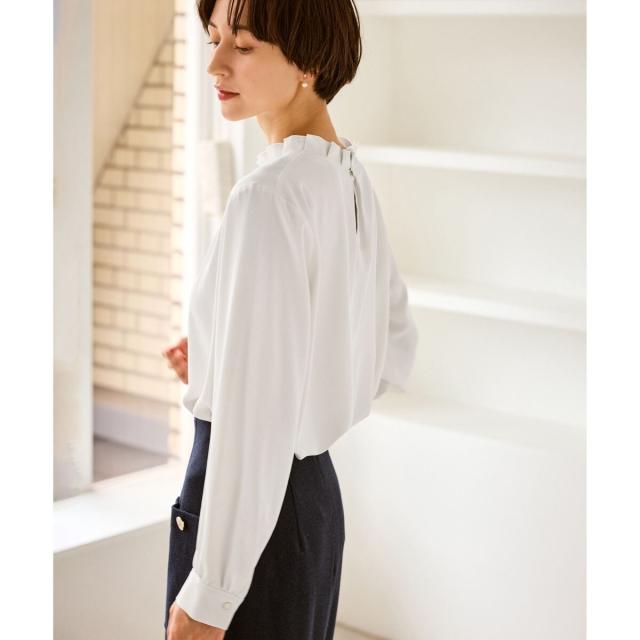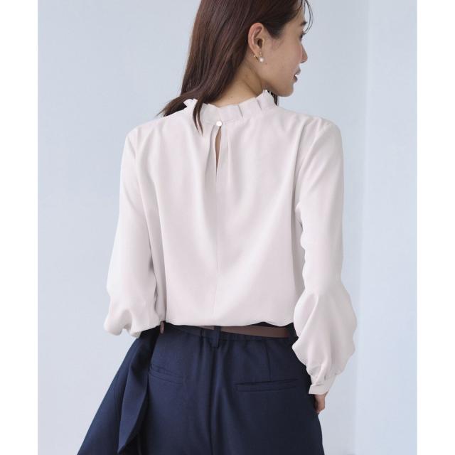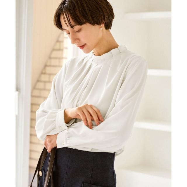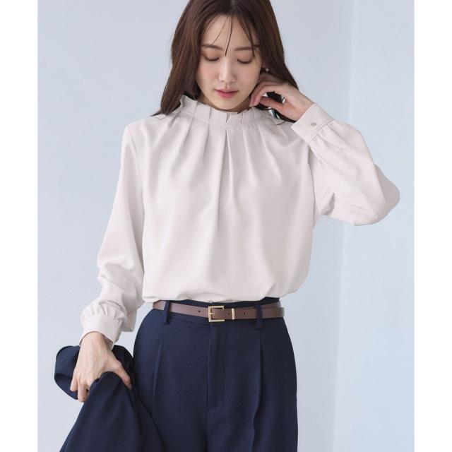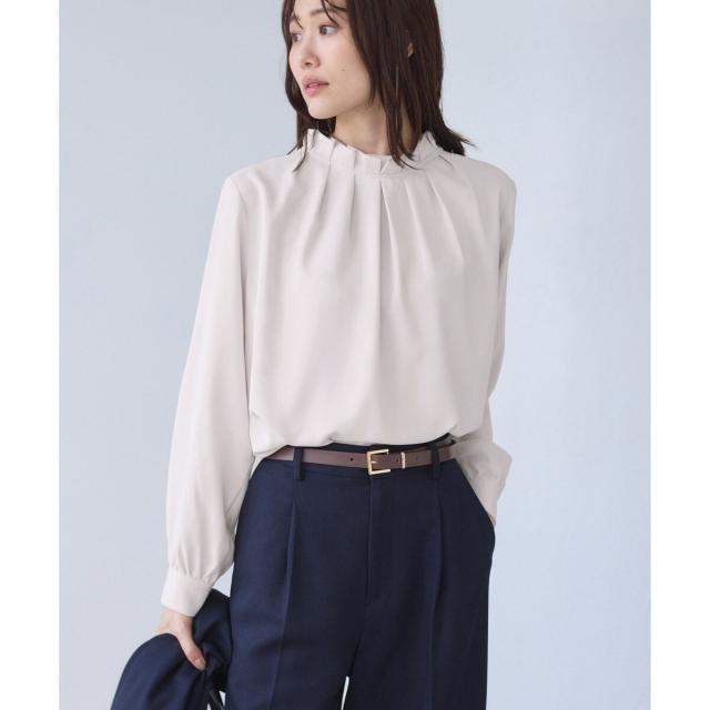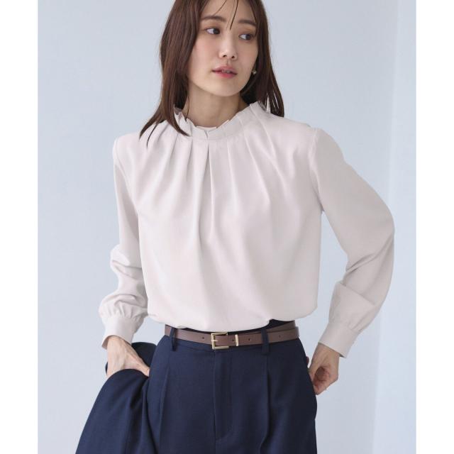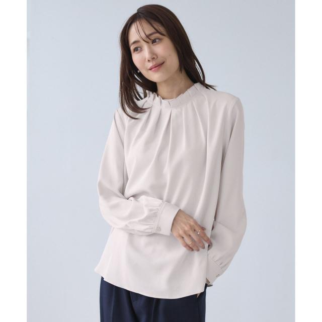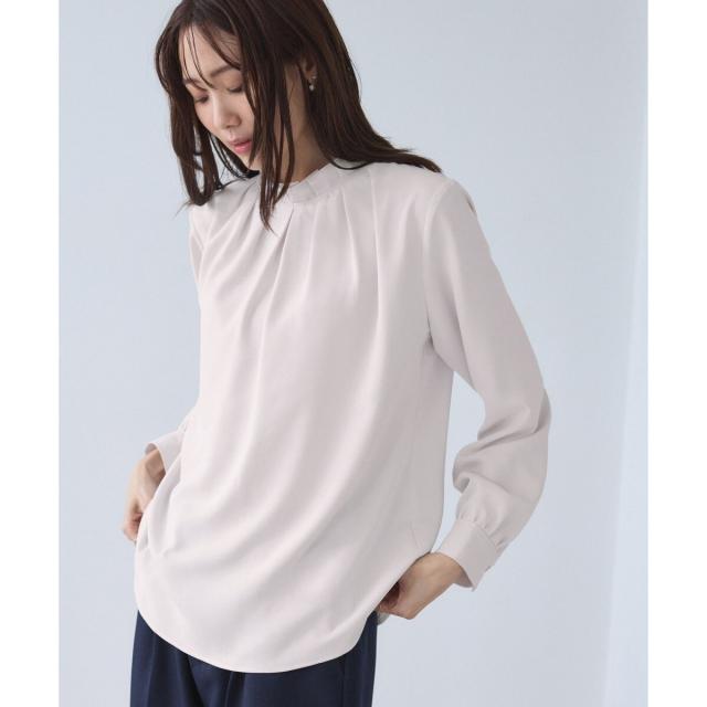 ・タック襟がエレガントな長袖プルオーバーブラウス。