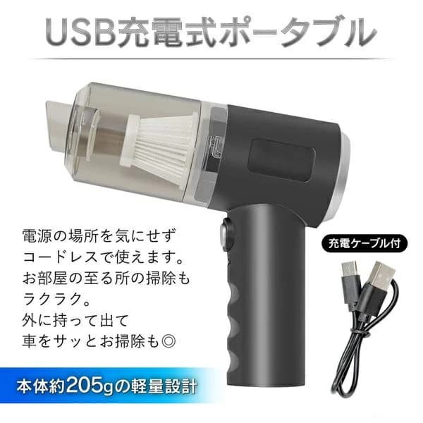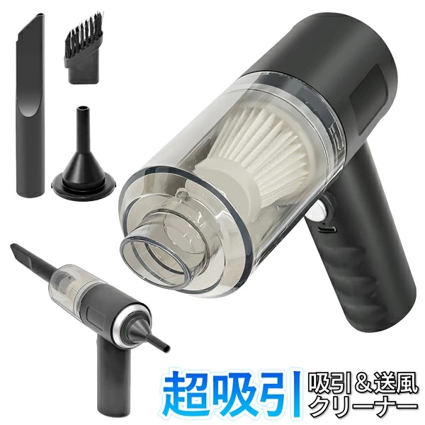 掃除機 コードレス ハンディクリーナー 超吸引 充電式 すき間 車内 送風 吸引力 2WAY 紙パック不要 カー用品 コードレスクリーナー
