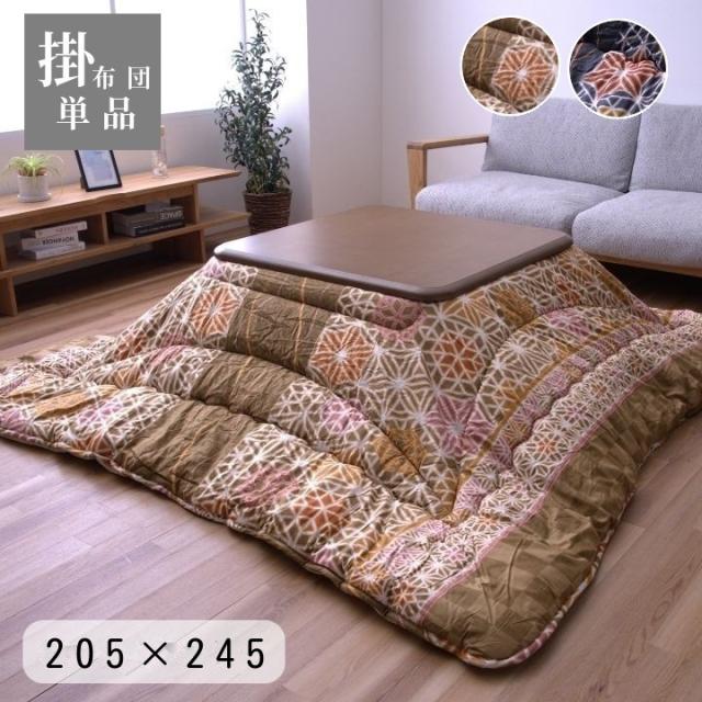 凛 こたつ布団 幾何学模様 レトロモダン 国産 日本製 ボリューム 洗える 手洗い 205×245cm ベージュ ネイビー