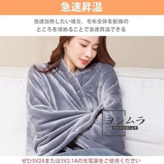 【急速昇温】急速加熱したい場合、毛布全体を配線のところを埋めることで急速昇温できる。ご注意:5V2Aまたは5V2.1Aの充電器をご使用ください。