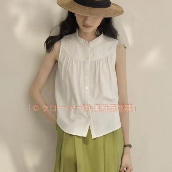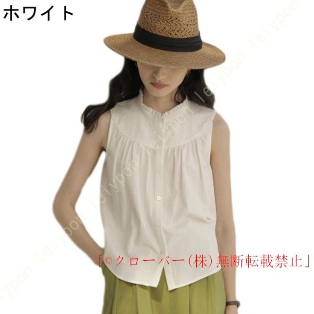 白シャツ ブラウス レディース 白 おしゃれ トップス クルーネック クローバー株式会社 切り替え フリルブラウス お洒落 ノースリーブブラウス プルオーバー 白シャツ 無地