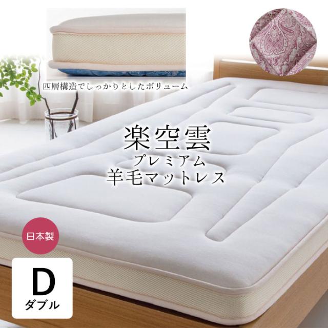 防ダニ 日本製 敷き布団 ダブル 138×198cm プレミアムウール 羊毛混 プレミアム羊毛マットレス ふとん 楽空雲 SW-507
