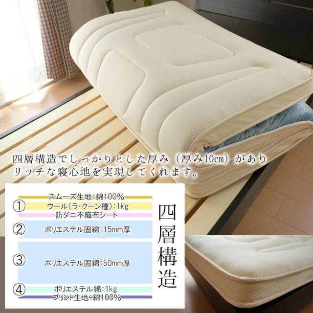 ベッドにも床・畳にも使える 羊毛敷布団