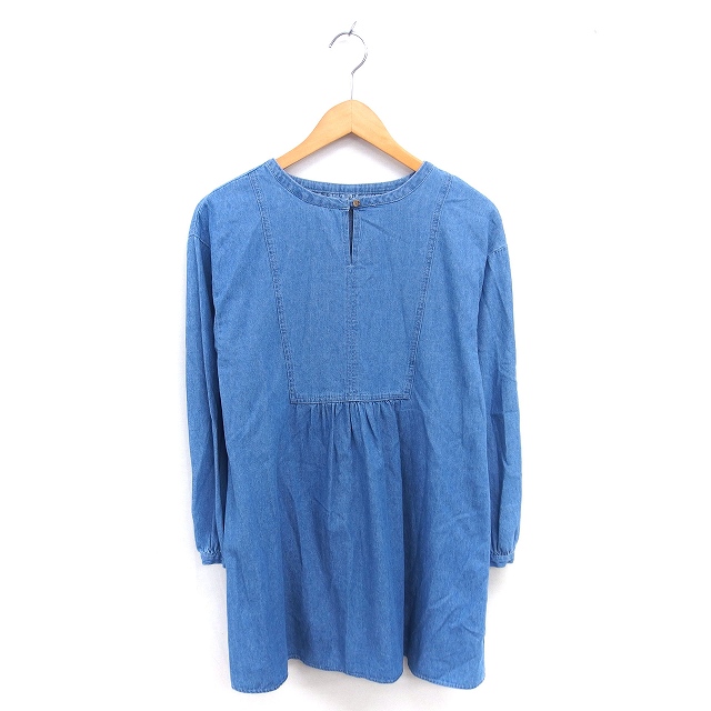 【中古】ショコラフィネローブ chocol raffine robe ワンピース ひざ丈 ソフトデニム ウォッシュ加工 長袖 F
