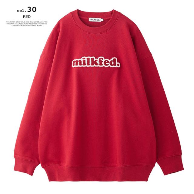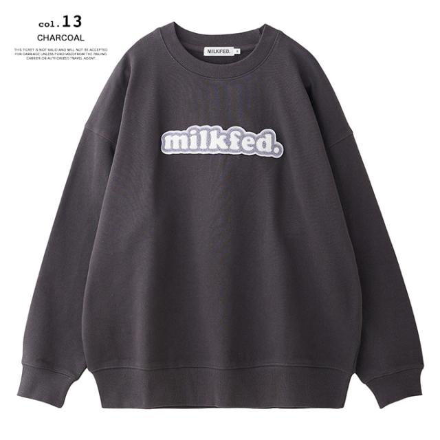 「 MILKFED. ミルクフェド 」 COOPER LOGO WIDE CREW SWEAT TOP クーパー ロゴ ワイド スウェット トップ 103253012004 / MILKFED. ミルクフェド クルー スウェット 長袖 クーパーロゴ サガラワッペン カジュアル ストリート レディース ウィメンズ 2025AW