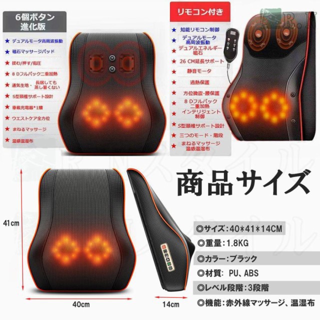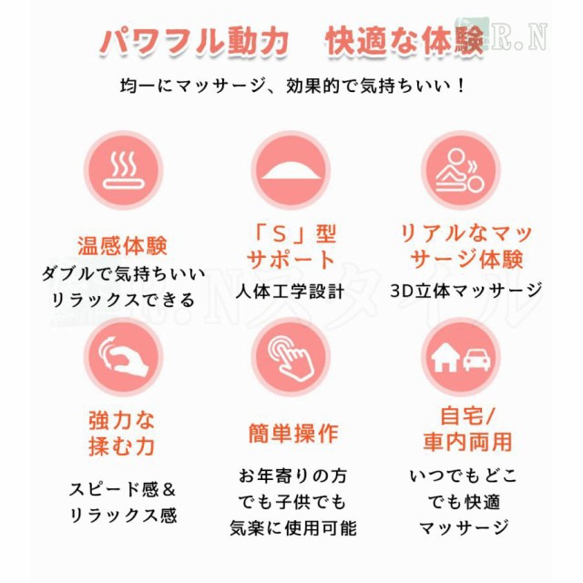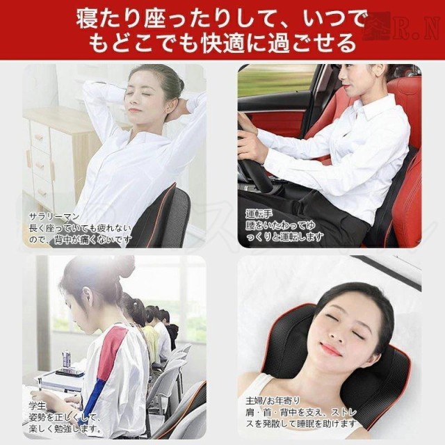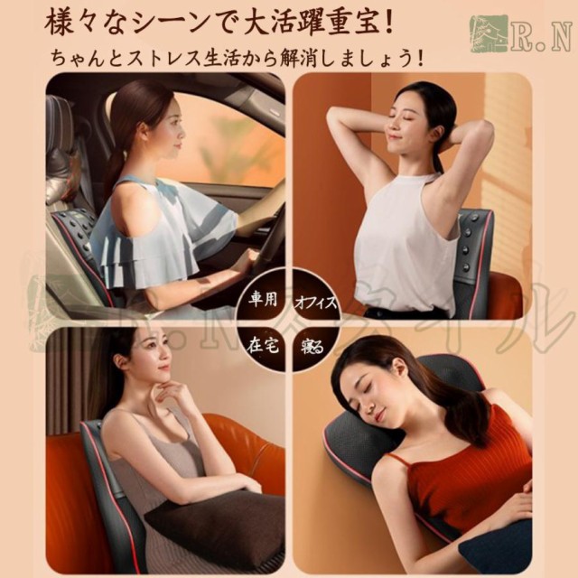 色々なシーンで活躍/三段階調節/ヒーター付/家庭・車載両用可能/コンパクト/簡単操作/3D揉み玉/人の手を模擬する/温熱機能/スマホ首を予防する/タイマー/人体工学設計/多機能/通気性良い/変形しにくい