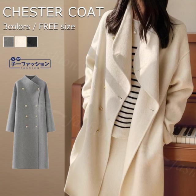ロングコート チェスターコート 冬新作 コート ロングコート レディース チェスター アウター ジャケット ロング丈 ゆったり 大きいサイズ 冬 秋 送料無料 オーバーサイズ 防寒 Aラインコート フレアコート 秋冬