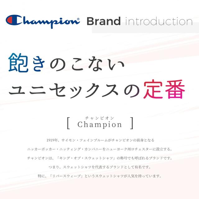 | ブランド | CHAMPION/チャンピオン 1919年ニューヨーク州ロチェスターで誕生したブランドで当初はセーターの販売を手掛けていました。1960年には、スウェットシャツが豊富なカラーバリエーションを背景に瞬く間に学生の間で注目され、アメリカのカレッジライフのマストアイテムとして急速に浸透していきました。歴史と伝統のある確かな技術をそのままに、現代流のストリートカジュアルデザインに仕上げるテイストは日本国内でも定番アイテムとして不動の人気を誇っています!! |