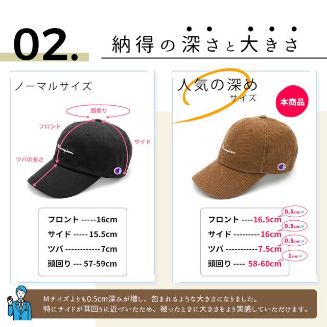 キャップ コーデュロイ レディース 深め 帽子 チャンピオン Champion コーデュロイキャップ 秋 冬 プレゼント ギフト メンズ ブランド 大きいサイズ 女性 女子 無地 春 紫外線対策 小顔効果 洗える 深い