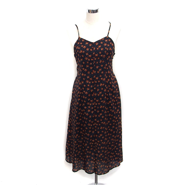 【中古】カージュ Khaju 花柄 キャミワンピース ロング クロスバック 背あき フレア ブラック 黒 /FT30 レディース
