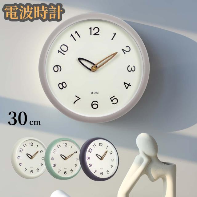 掛け時計 電波時計 クリーム 直径30cm かわいい 壁掛け時計 北欧 おしゃれ 音がしない ウォールクロック インテリア 連続秒針 静音 無騒音 デザイン シンプル 韓国 人気 電波 DBcw