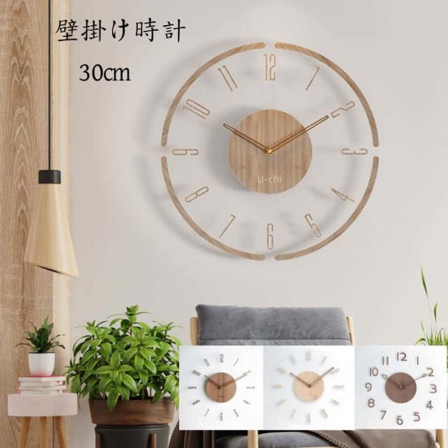 掛け時計 アナログ 壁掛け時計 北欧 くるみ おしゃれ 音がしない 柱時計 木製 ウッド 天然木 ウォールクロック インテリア 連続秒針 静音 無騒音 デザイン ナチュラル ウォールクロック シンプル 非電波 30cm