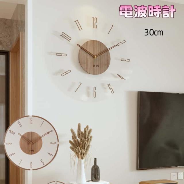 電波時計 壁掛け時計 北欧 くるみ おしゃれ 音がしない 柱時計 木製 ウッド 天然木 ウォールクロック インテリア 連続秒針 静音 無騒音 デザイン ナチュラル ウォールクロック シンプル 電波 30cm