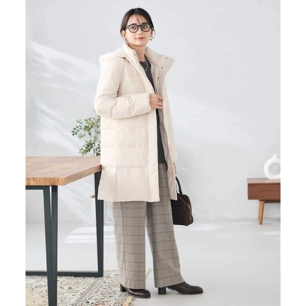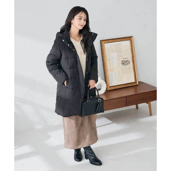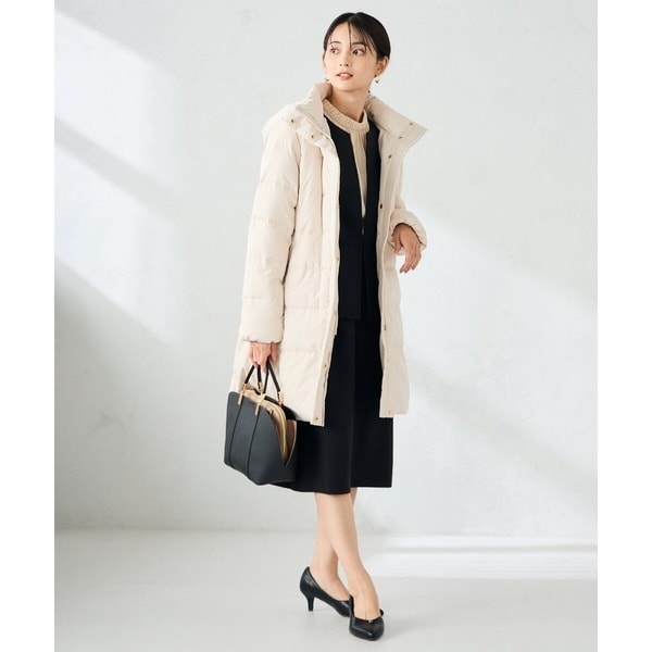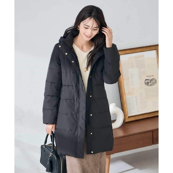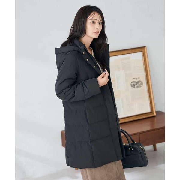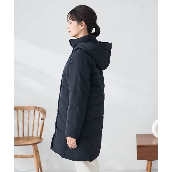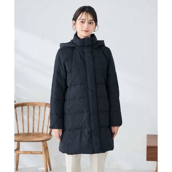 ■素材:ネイビー/ベージュ/ブラック:表地 ポリエステル 100% 詰物 身頃・袖部分 ダウン 70% フェザー 30% 前立て 衿・フード部分 ポリエステル 100% 裏地 ポリエステル