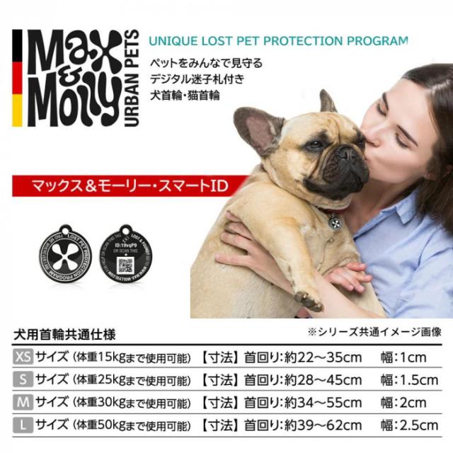 | もし迷子になってしまっても、スマートIDが迷子札代わりになるので安心!さらに、ステッチには反射材を使用しているので、暗闇での視認性も高く夜間のお散歩も安心です。スタイリッシュなデザインと、快適性・機能性を両立する品質を兼ね備えた、ドイツ発の犬猫具ブランド「マックス&モーリー」はすべての首輪に世界に一つだけのQRコードが入ったIDタグを標準装備しています。 【商品説明】 ・スマートIDの使い方はとても簡単で、QRコードを読み取り、専用画面で事前に情報登録をしておくだけ。初期費用・使用料は一切かかりません。 【注意事項】 ※本製品はペット用製品です。本来の用途以外には使用しないでください。 ※犬の急な動きにより想定荷重を超えた場合、金属部分が破損する恐れがありますので十分にご注意ください。 ※経年劣化による事故防止のため、ご使用前後には必ず点検を行ってください。 ※壊れかけた場合は直ちに使用を中止し新しいものに交換してください。 |