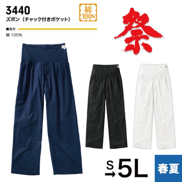 村上被服 3440 ズボン(チャック付きポケット) 祭り用ズボン ズボン パンツ 祭り用 祭り 綿100% HOOH 鳳凰