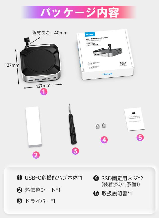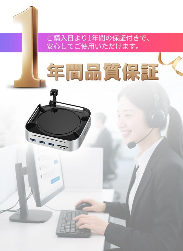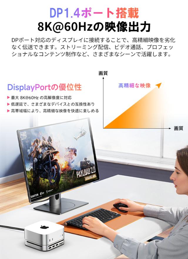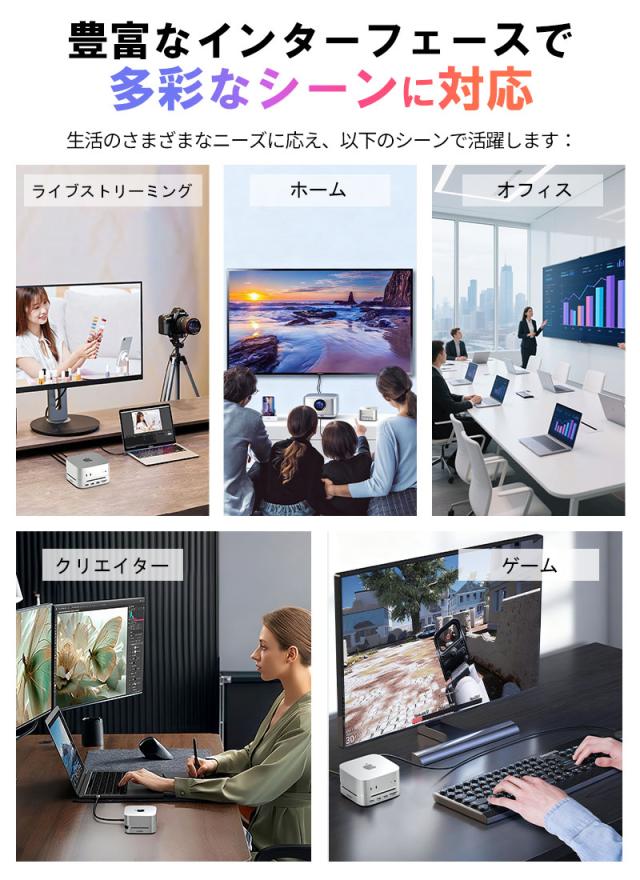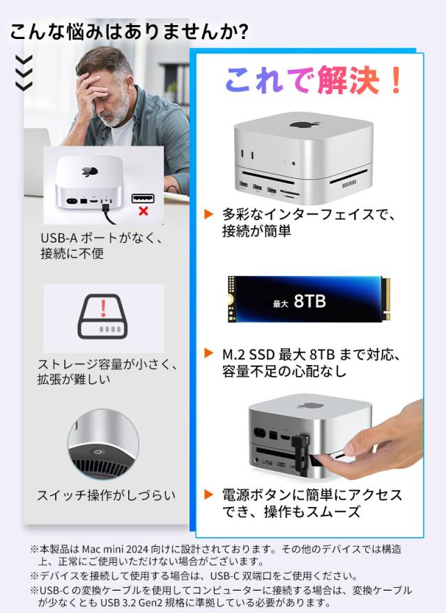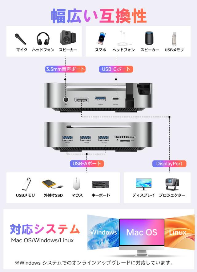 対応デバイス:2024 Mac mini、USB-Cポート(USB-Cはデータ伝送をサポートするポートです)を搭載したミニPC、ノートパソコン、オールインワンデスクトップPC等