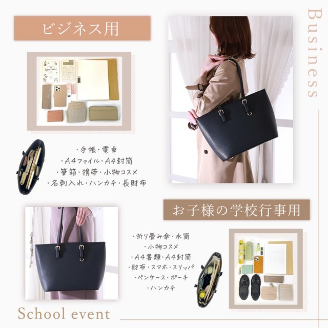 ビジネスバッグ レディース A4 軽量 自立 リクルートバッグ 就活 面接 トートバッグ 通勤 通学 大容量 入学 折らずにお届け送料無料