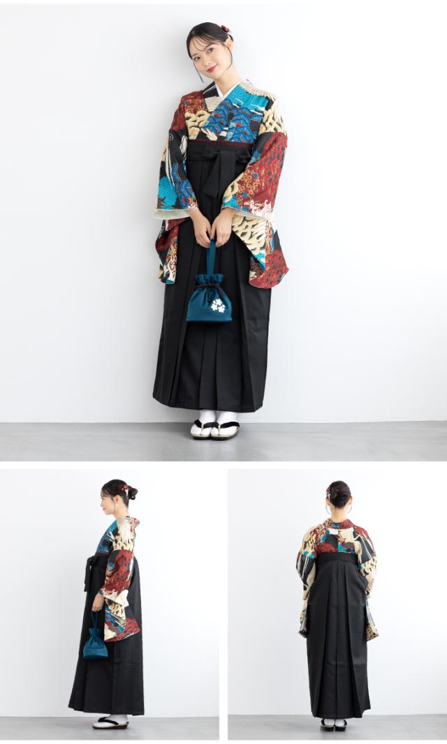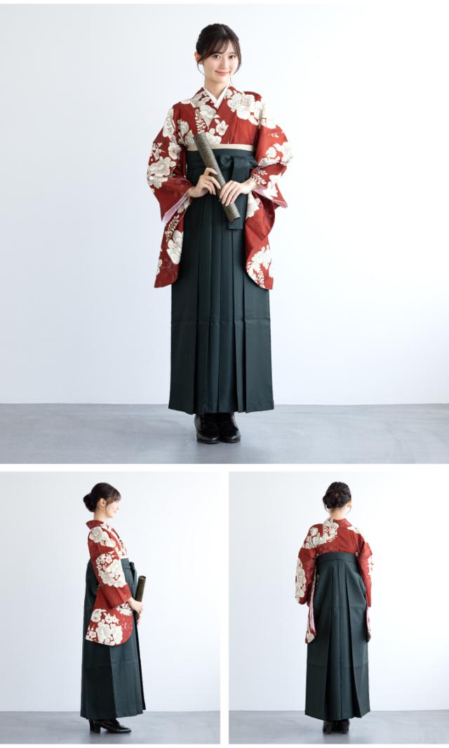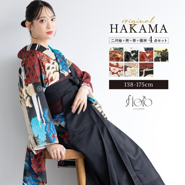 【予約】袴セット 卒業式 大学生 レディース 女性 女の子 小学生 ジュニア 袴 4点セット floro 緑 白 紺 赤 黒 青 グレー ピンク 鶴 花柄 二尺袖 着物 襦袢 帯 着物セット 購入 販売 創美苑 送料無料