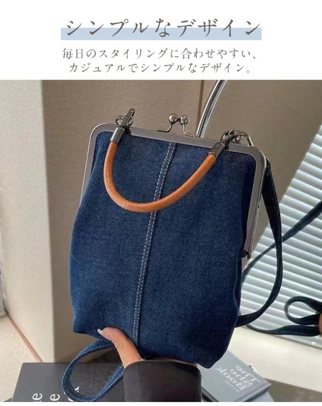 スマホポーチ スマホショルダー デニムバッグ レディース ポシェット がま口 斜め掛け 手提げ 縦型 ストラップ付 長さ調節可能 取り外せる 軽量