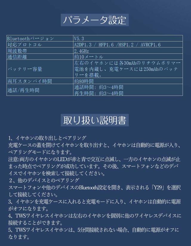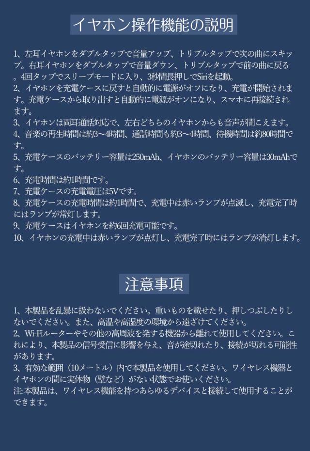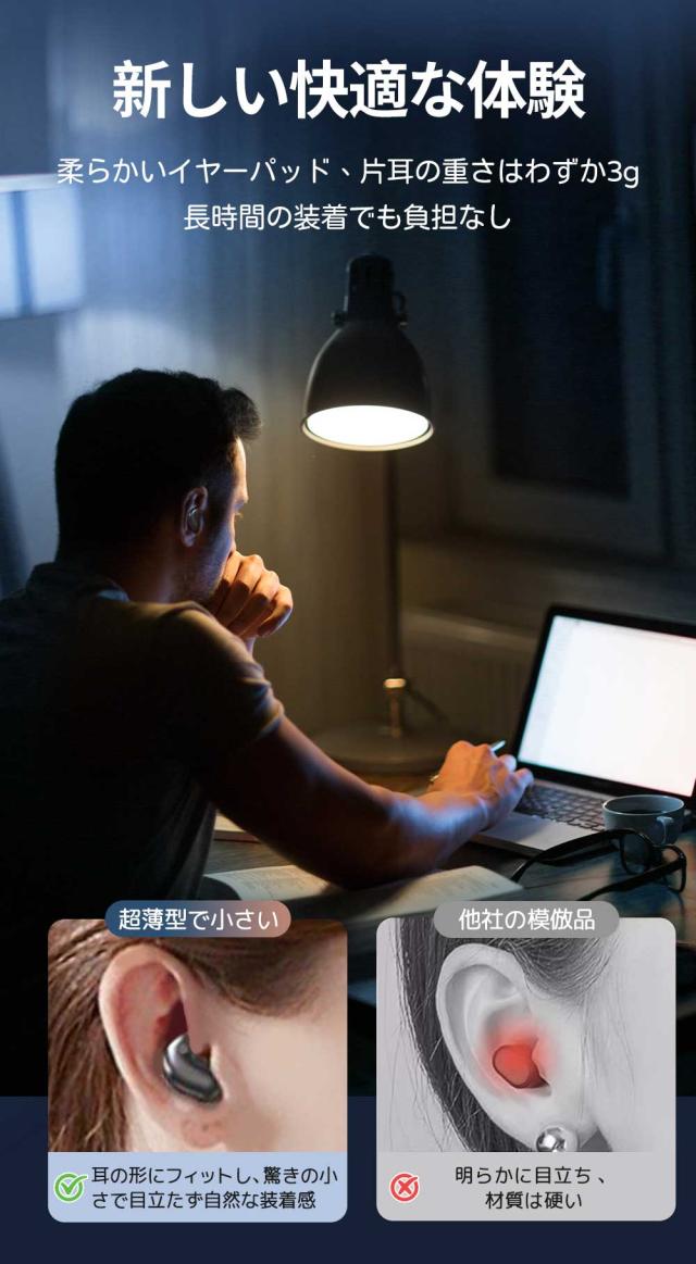 - 装着のストレスがないのが驚き、着けているのを忘れるくらいです! ペアリングもスムーズに出来、音質も良く、本当に良い買い物をしたと思います。ただ、説明書が日本語じゃない…ワイヤレスには慣れているので、何...
