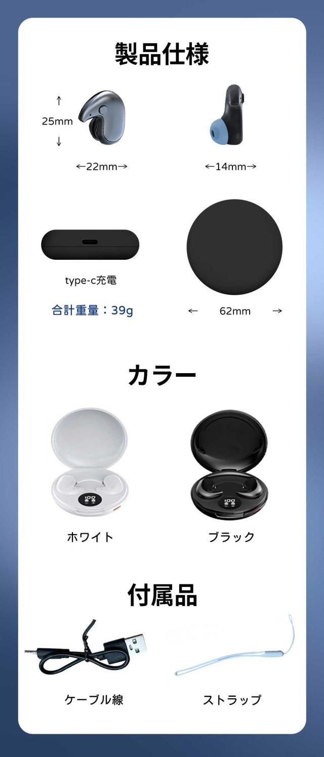 わずか39gの軽量ボディで、寝返りを打っても気にならず、ストレスフリーな使用感を提供します。