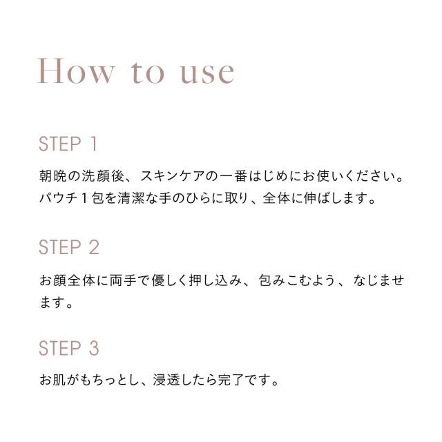 | 原材料名 | 水、ベタイン、アスコルビン酸、1,2-ヘキサンジオール、キシリトール、エリスリトール、コハク酸ジエトキシエチル、アルギニン、ホスファチジルコリン、スフィンゴミエリン、ココイルアルギニンエチルPCA、塩化Mg、ペンチレングリコール、ステアレス-20、BG、チオクト酸、キハダ樹皮エキス、ビスPEG-18メチルエーテルジメチルシラン、ヒドロキシエチルセルロース、ホホバ種子油、ダマスクバラ花油 |