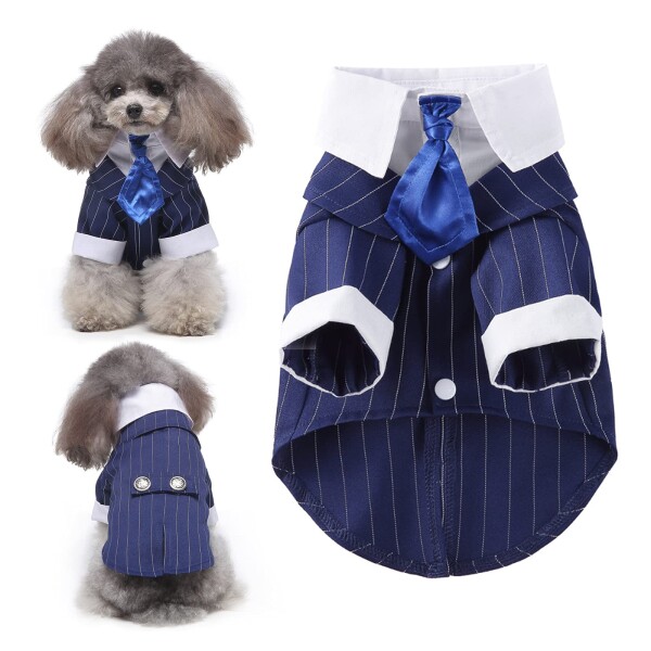 HACRAHO 犬の結婚式のタキシード, 1個 ブルー ネクタイと犬の縞模様のタキシード 結婚披露宴のための犬のタキシード蝶ネクタイシャツ犬猫子犬, 胸囲20.47"