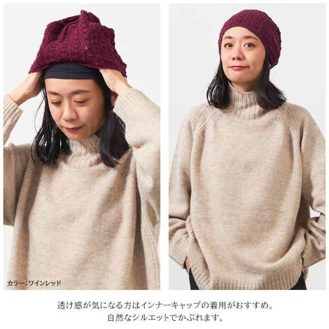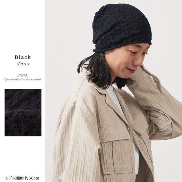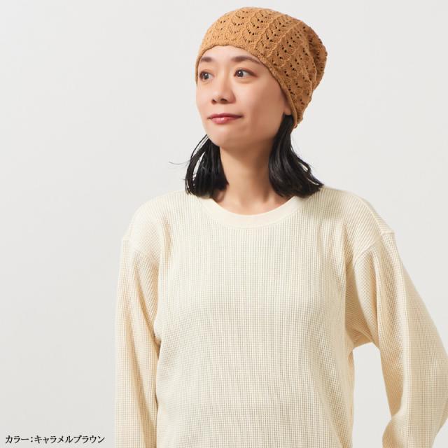 レディース オールシーズン 秋 冬 秋冬 秋用 冬用 綿100% 帽子 医療用帽子 ケア帽子 抗がん剤 治療 室内帽子 ニット帽 ニットキャップ ワッチキャップ 女性 婦人 おしゃれ かわいい SENSE OF GRACE | STERN 透かし編み コットン ルーズワッチ ls-ste