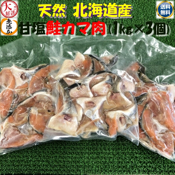 送料無料 無添加 天然 北海道産 甘塩 鮭カマ肉 1kg×3個 合計3kg ギフトプレゼント 贈答 海鮮 グルメ 魚介 海産物 お歳暮