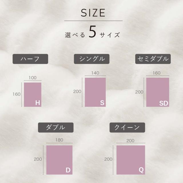 シングル・セミダブル・ダブル・クイーン・ハーフの5サイズ展開。