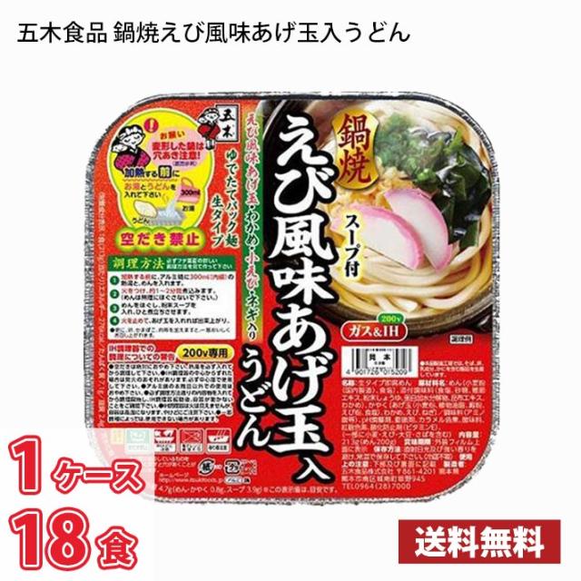 五木食品 鍋焼えび風味あげ玉入うどん(213g) 18食入り 1ケース 送料無料(北海道は別途700円かかります。沖縄配送不可) / うどん カップ麺