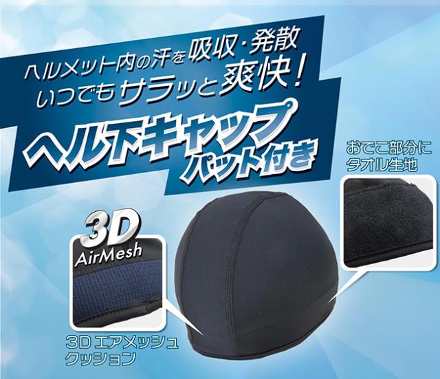 ヘルメットの下でも快適さを。汗をしっかり吸収するインナーキャップ
