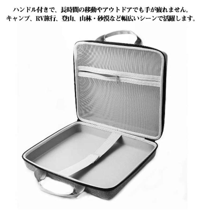| Starlink Mini収納ケース 防水性と耐衝撃性があり、旅行中もStarlink Miniをしっかりと固定します。 ミニディッシュキット用に専門的に設計されており、ぴったりとしたフィット感と優れたクッション性を提供します。 外側は頑丈なナイロン、中間層はEVA、内側は柔らかいベルベットで作られており、機器を傷やほこりから保護します。 ハンドル付きで、長時間の移動やアウトドアでも手が疲れません。キャンプ、RV旅行、登山、山林・砂漠など幅広いシーンで活躍します。 | |