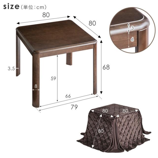 ダイニング こたつ 80 × 80cm 手元コントローラー付き 省エネ コタツ 掛け布団 ダイニングコタツ ダイニングこたつ こたつ 高脚こたつ 家具調こたつ